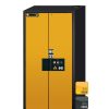 Cuerpo exterior con recubrimiento de melamina, de alta calidad y resistente a arañazos, puertas con 3 bisagras, mecanismo de cierre completo y elementos de seguridad fuera de la zona de almacenamiento para evitar la corrosión con puertas con sistema de bloqueo de serie para una carga/descarga segura de los recipientes. El cierre de puertas automático de serie (TSA) libera las puertas bloqueadas tras aproximadamente 60 segundos con señal acústica y visual antes del cierre.
